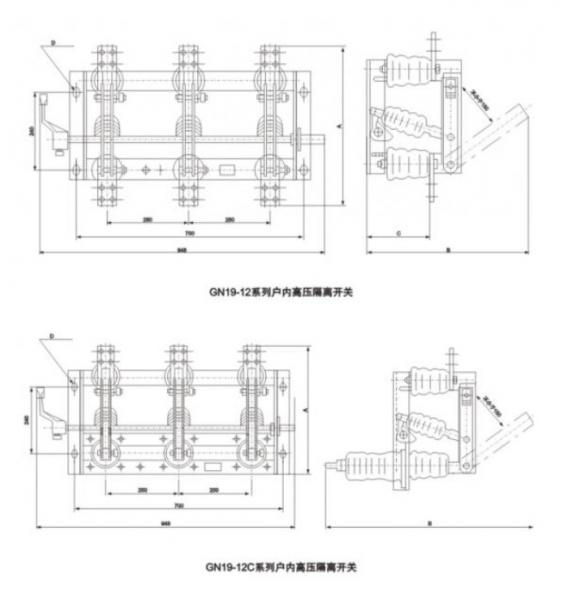 GN19-10,10C/400,630,1250型户内高压隔离开关适用于交流5Hz,额定工作电压6,10kv,额定工作电流200,630,1250A的电力系统中,作为有电压无负荷情况下的分断,闭合电路的户内开关设备使用.
