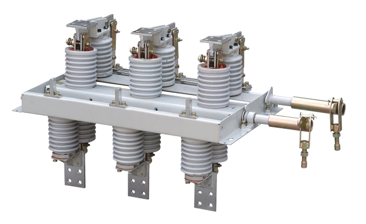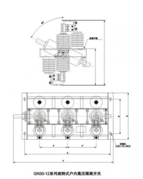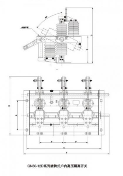 N30-12型旋转式户内高压隔离开关是一种旋转触刀式的新型隔离开关,主要 结构是在三相共底架上,下两个平面上,固定两组绉缘子及触头,通过旋转触刀,从而实现开关的分合闸。