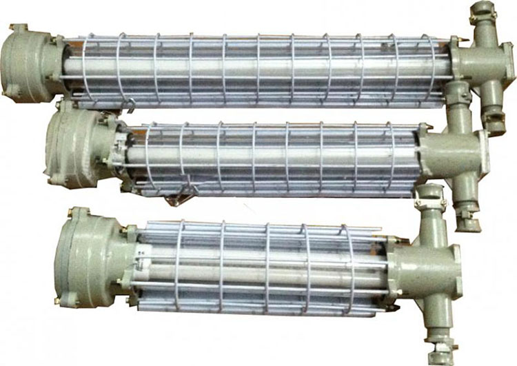 矿用隔爆型荧光灯:本系列防爆灯具使用于煤矿井下有瓦斯(甲烷族)煤尘爆炸危险的场所。主要适用于井底停车场、采区巷道、峒室、井下煤仓、变电所等场所作照明之用。亦可在有淋水较大的基建矿井巷道及峒室中使用。
