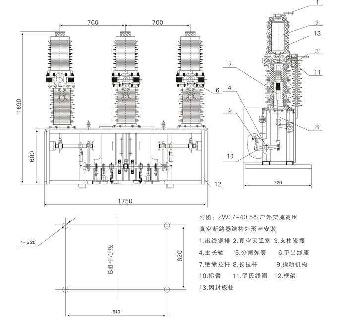 | ZW37-40.5型户外交流真空断路器为额定电压40.5kV,三相交流50Hz的户外高压开关设备。主要用于开断、关合电力系统的负载电流、过载电流及短路电流。 适用于变电站、工矿企业及城、农网作保护和控制,特别适用于操作频繁的场所和城网自动化配电网络。 该产品符合下述标准: GBT1984高压交流断路器; GB/T11022高压开关设备和控制设备标准的共用技术 要求; DI402交流高压断路器订货技术条件。 | |||||||||||||||||||||||||||||||||||||||||||||||||||||||||||||||||||||||||||||||||||||||||||||||