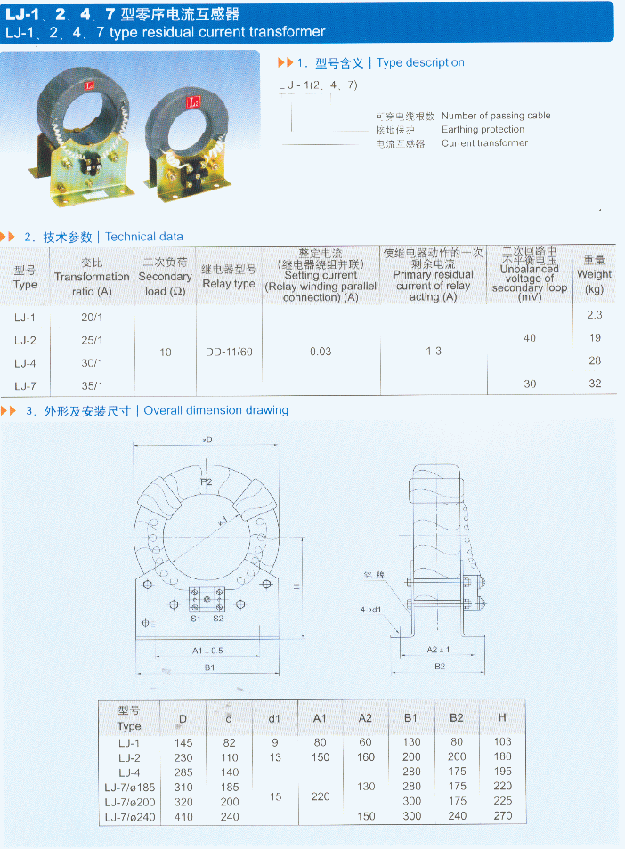 LJ-1、2、4、7系列零序互感器