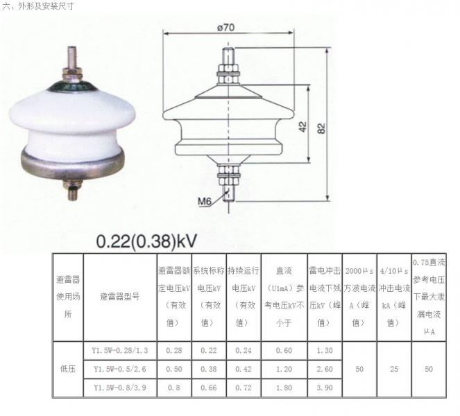 Y1.5W-(0.28-0.8)/(1.3-3.9)(FYS-0.22)陶瓷低压避雷器