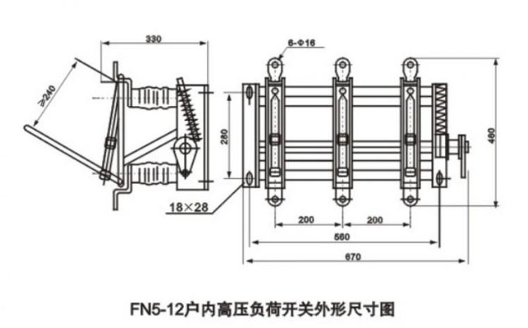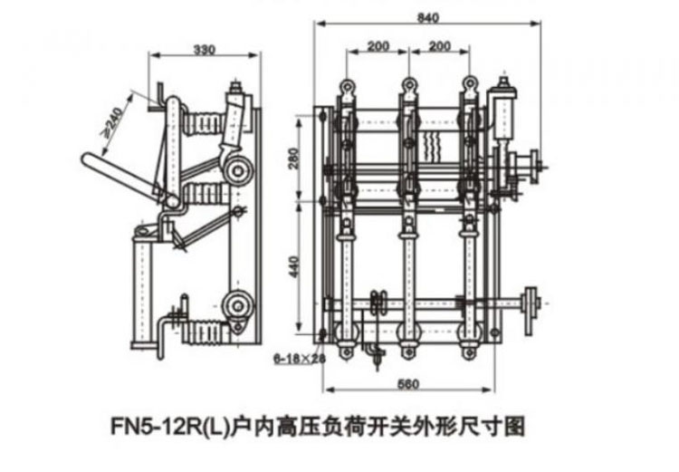 FN5-12R(L)型户内交流高压负荷开关一熔断器组合电器适用于50HZ、12KV的电网络中,作为开断负荷电流及关合电流之用。带有熔断器的负荷开关可切断短路电流作保护开关之用。 本负荷开关可配用CS6-1型手动操作机构、本产品专用CS口手动或CJ口电动操作机构。